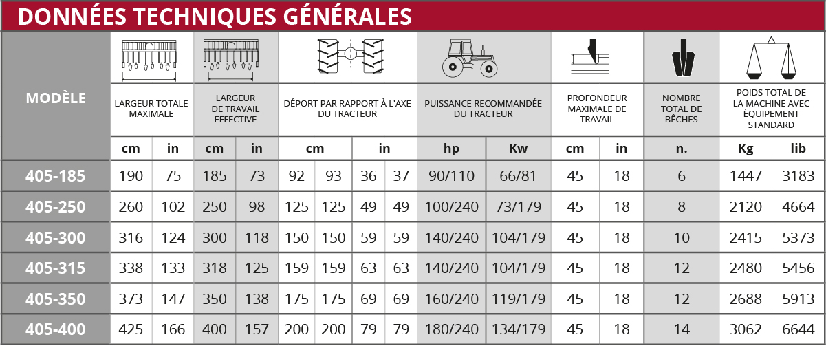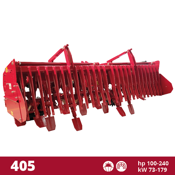 Les rotobêches de la série 405 sont conçues pour fonctionner en association avec des tracteurs de puissance élevée et permettent de travailler le sol à grande profondeur, y compris dans des conditions particulièrement difficiles. Optimales pour les entrepreneurs et les grandes sociétés et pour une utilisation en champs ouverts. Elles se caractérisent par la grande robustesse du châssis et, grâce à la présence de la prise de force arrière, elles peuvent être combinées à des machines permettant de préparer le lit de semence sans étapes supplémentaires.
