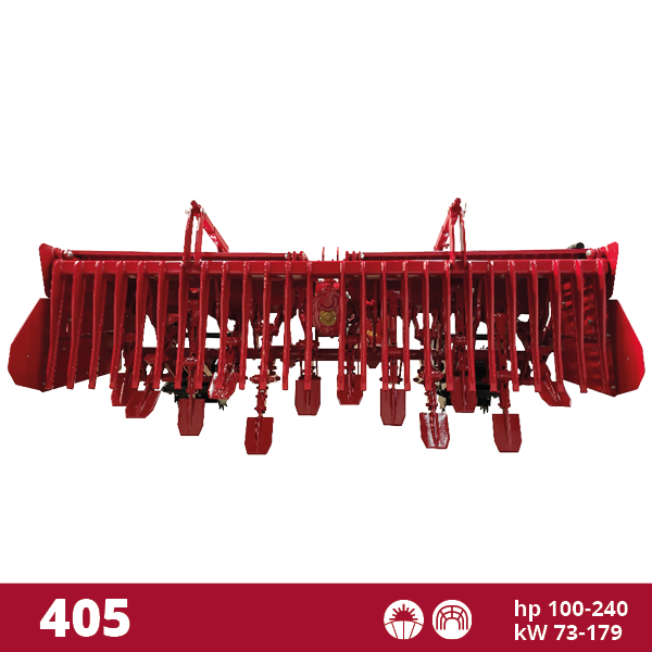 Les rotobêches de la série 405 sont conçues pour fonctionner en association avec des tracteurs de puissance élevée et permettent de travailler le sol à grande profondeur, y compris dans des conditions particulièrement difficiles. Optimales pour les entrepreneurs et les grandes sociétés et pour une utilisation en champs ouverts. Elles se caractérisent par la grande robustesse du châssis et, grâce à la présence de la prise de force arrière, elles peuvent être combinées à des machines permettant de préparer le lit de semence sans étapes supplémentaires.