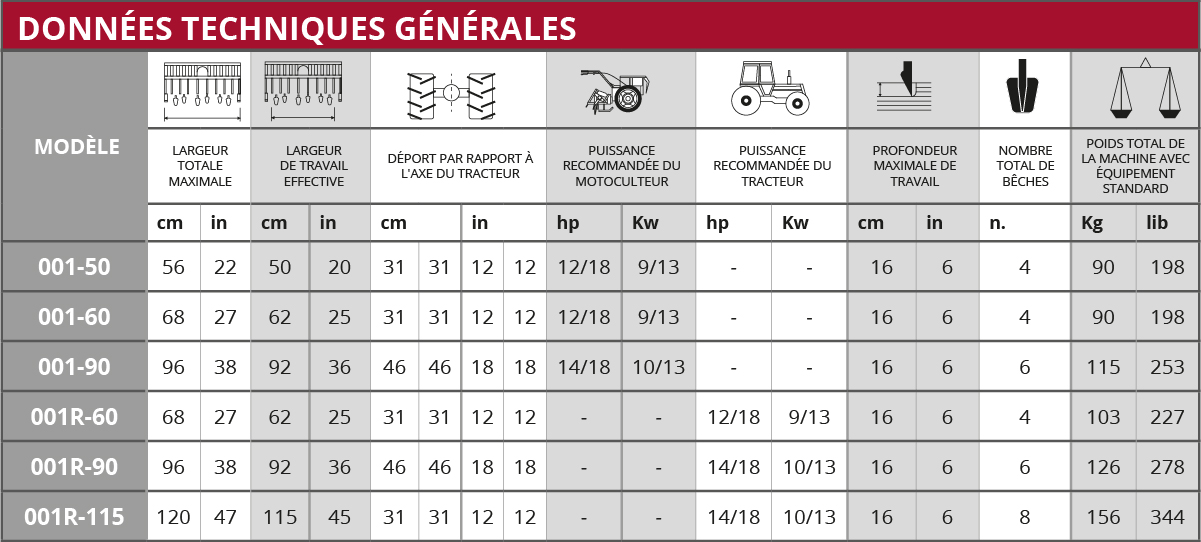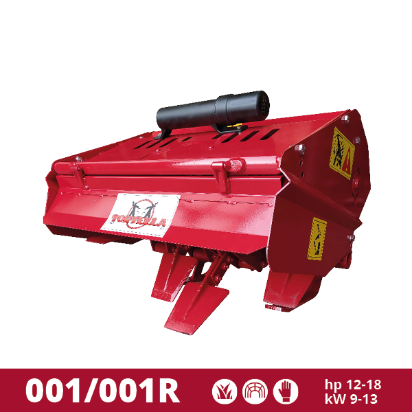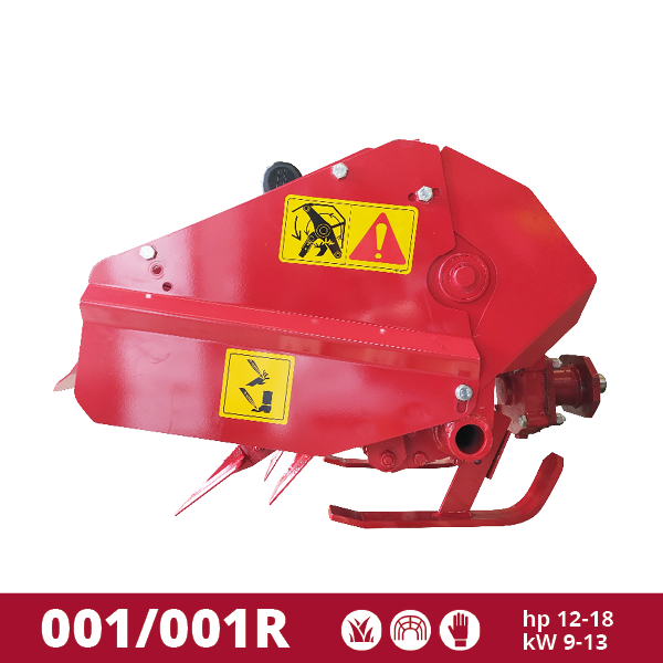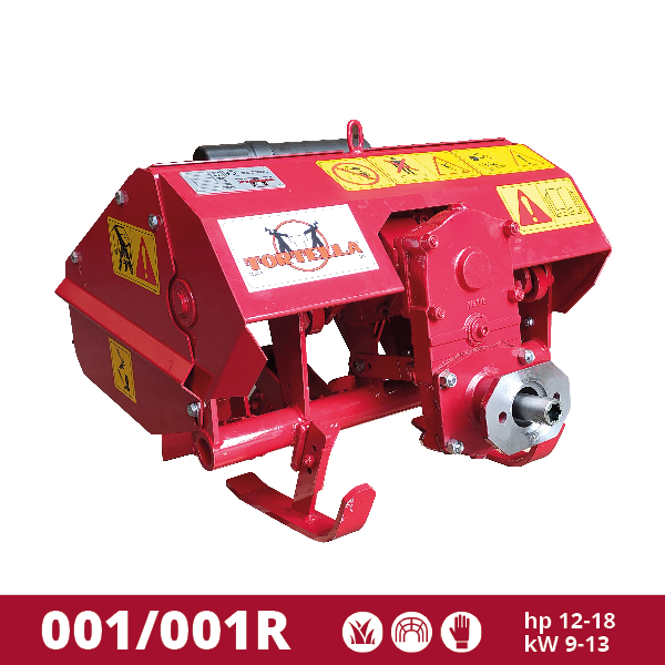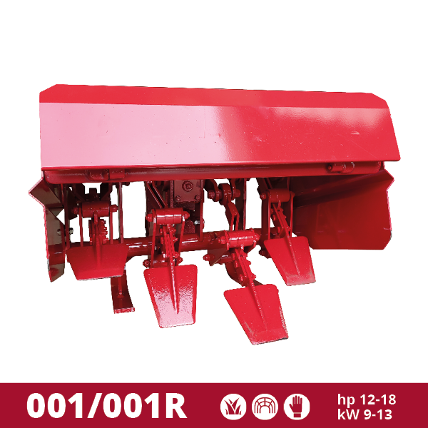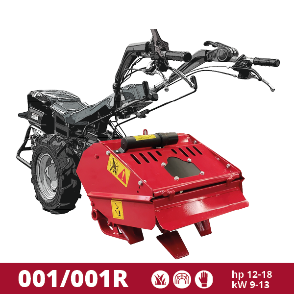 Les séries 001 et 001R comprennent des rotobêches de dimensions et de poids réduits, destinées à être couplées à des motoculteurs et à des petits tracteurs, idéales pour travailler dans les serres, les potagers, entre les rangées de vignes, le jardinage, à usage privé, etc.