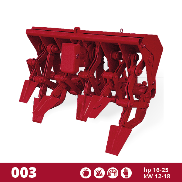 La série 003 comprend des rotobêches légères et compactes, adaptées aux petits tracteurs. Nos machines sont idéales pour travailler la terre en horticulture, pépinières, vignobles, jardinage, à usage privé, etc. Elles sont équipées d’une boîte de vitesses à 2 rapports et de glissières externes pour le réglage de la profondeur de travail.